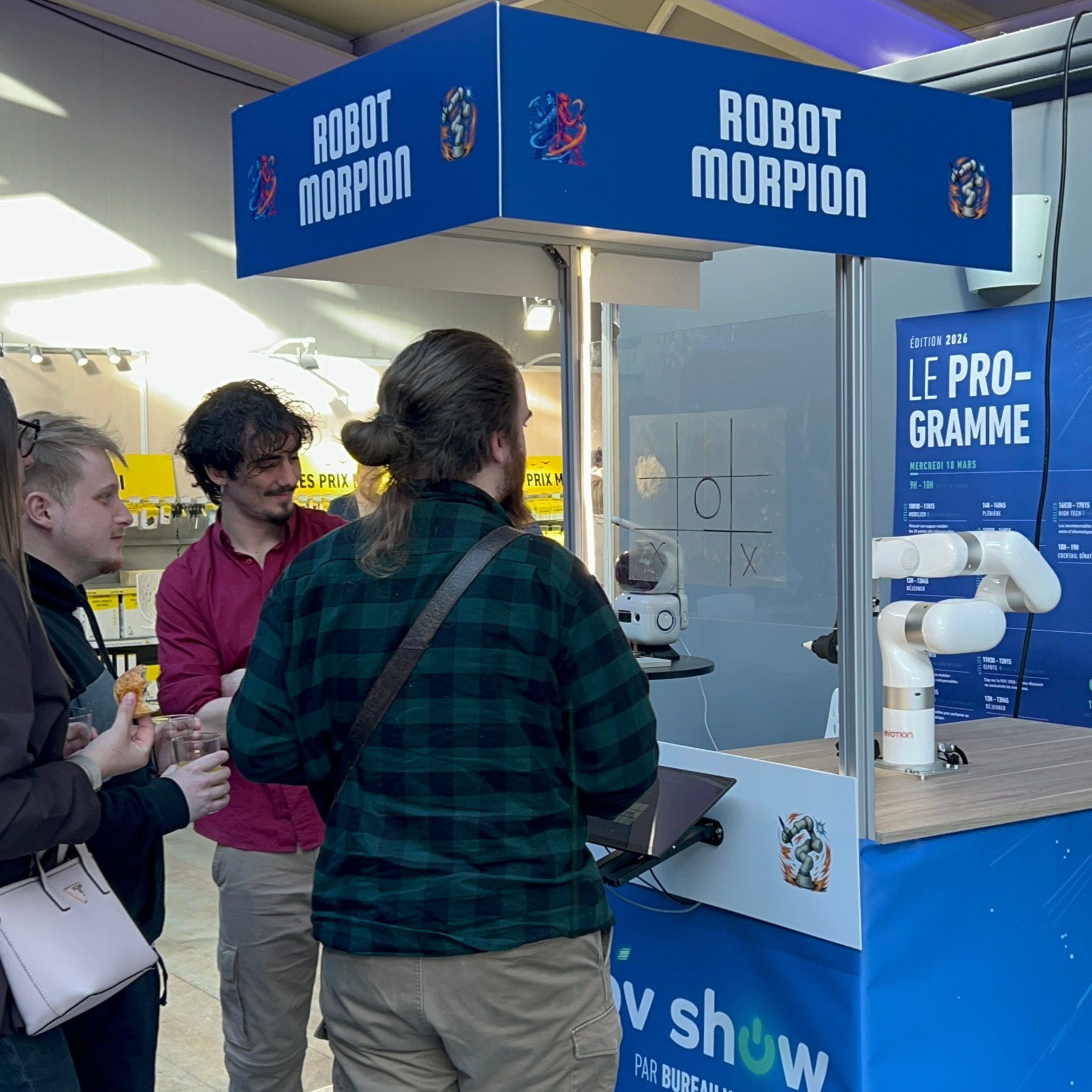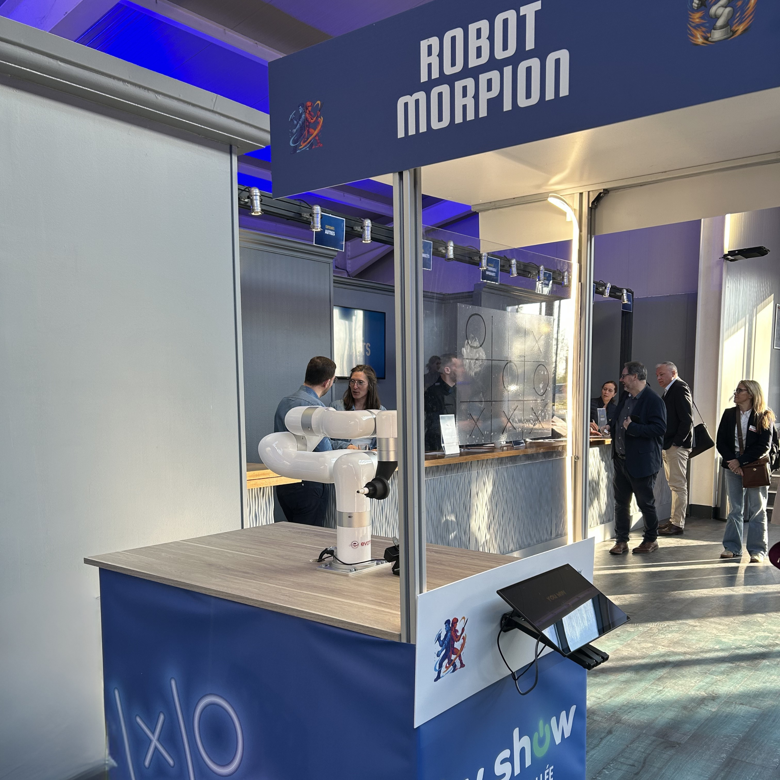 Original et interactif, le Robot Morpion capte l’attention dès les premières secondes. Il crée un point d’attraction fort, génère de l’échange et marque les visiteurs par une animation qu’ils n’auront jamais vue ailleurs.